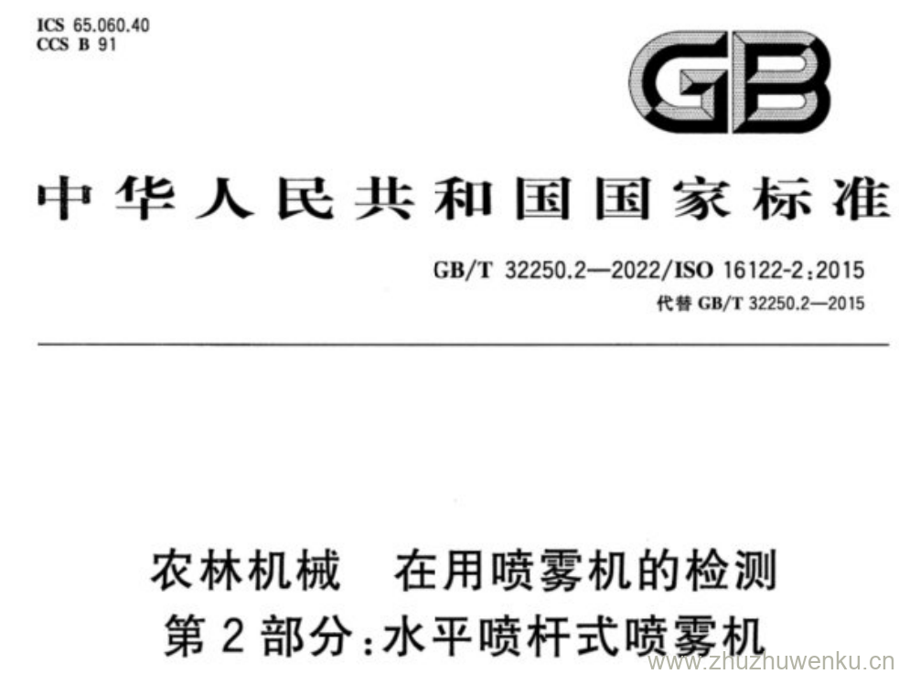 GB/T 32250.2-2022 pdf下载 农林机械 在用喷雾机的检测 第2部分:水平喷杆式喷雾机