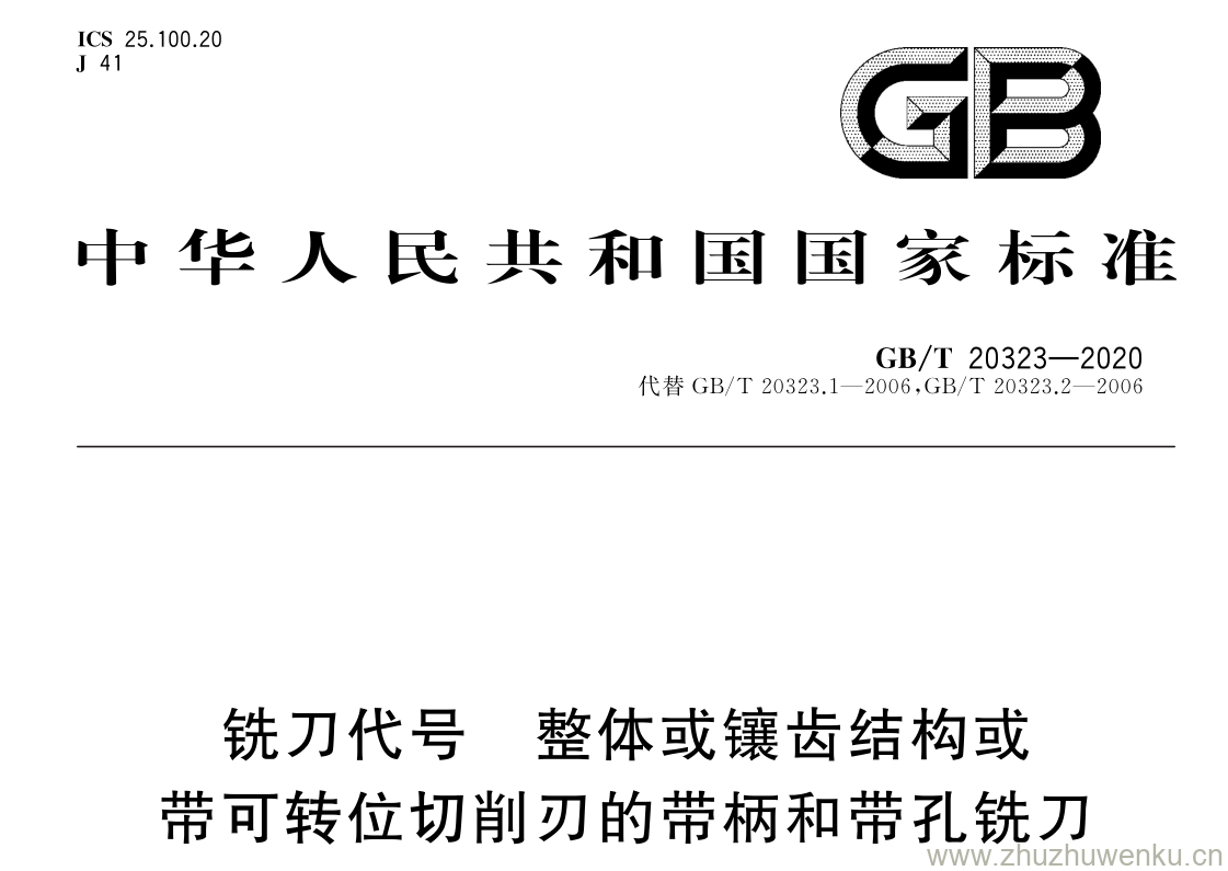 GB/T 20323-2020 pdf下载 铣刀代号 整体或镶齿结构或 带可转位切削刃的带柄和带孔铣刀