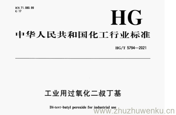 HG/T 5794-2021 pdf下载 工业用过氧化二叔丁基。 Di-tert-butyl peroxide for industrial use .