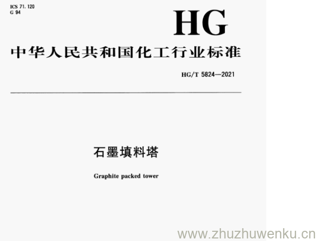 HG/T 5824-2021 pdf下载 石墨填料塔。Graphite packed tower .