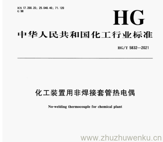 HG/T 5832-2021 pdf下载 化工装置用非焊接套管热电偶。No welding thermocouple for chemical plant .