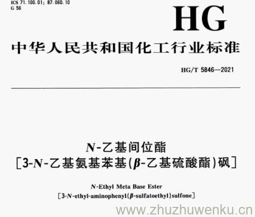 HG/T 5846-2021 pdf下载 N-乙基间位酯 [3-N-乙基氨基苯基(p-乙基硫酸酯)砜]. N-EthyI Meta Base Ester [3-Nethy-aminophenyl(-slfatoethyI)sulfone] .