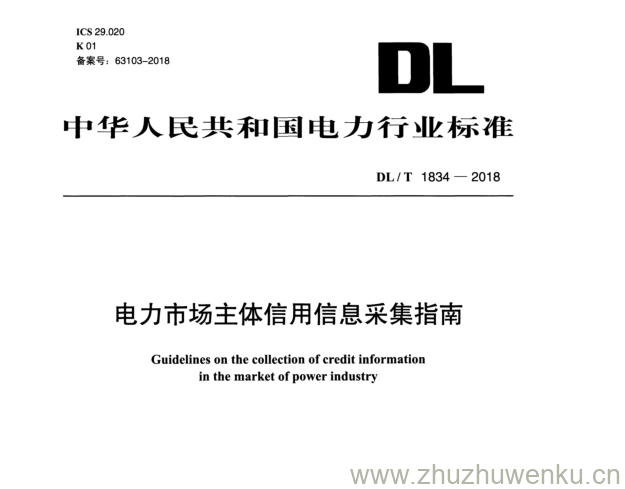 DL/T 1834-2018 pdf下载 电力市场主体信用信息采集指南。Guidelines on the collection ofcredit information in the market of power industry.
