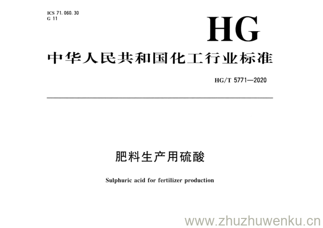 HG/T 5771-2020 pdf下载 肥料生产用硫酸。 Sulphuric acid for fertilizer production .