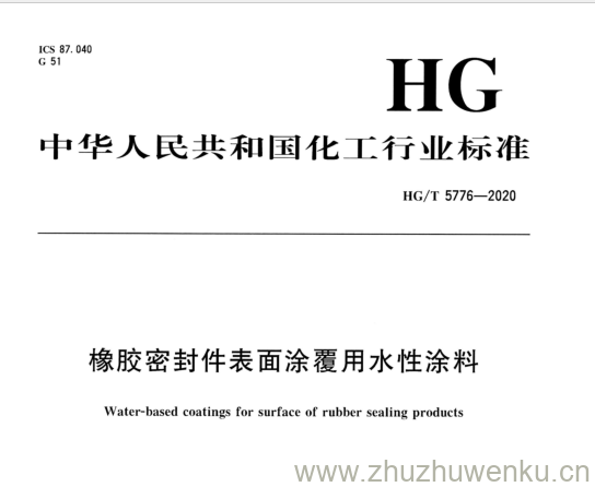 HG/T 5776-2020 pdf下载 橡胶密封件表面涂覆用水性涂料