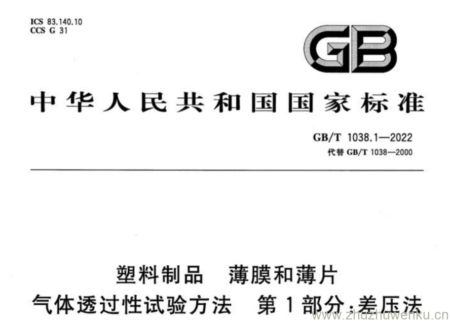 GB/T 1038.1-2022 pdf下载 塑料制品 薄膜和薄片 气体透过性试验方法 第1部分:差压法