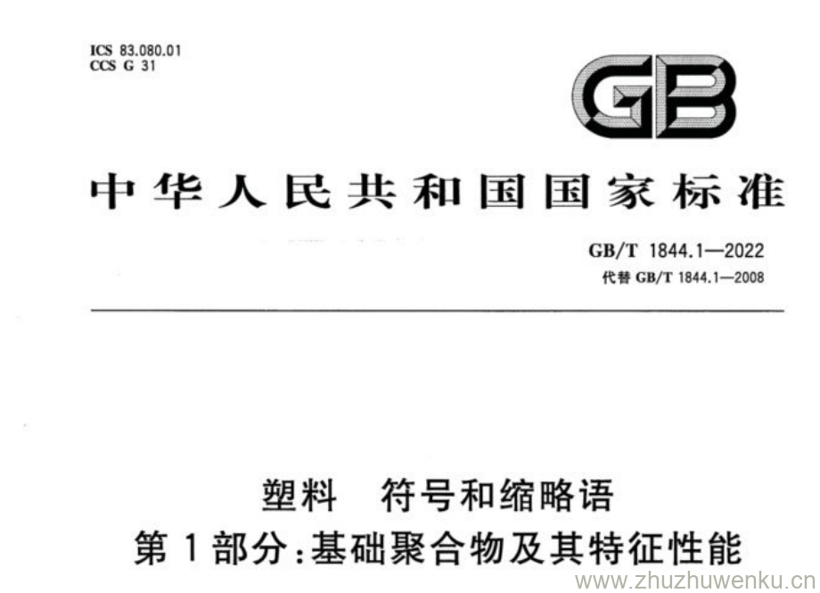 GB/T 1844.1-2022 pdf下载 塑料 符号和缩略语 第1部分:基础聚合物及其特征性能