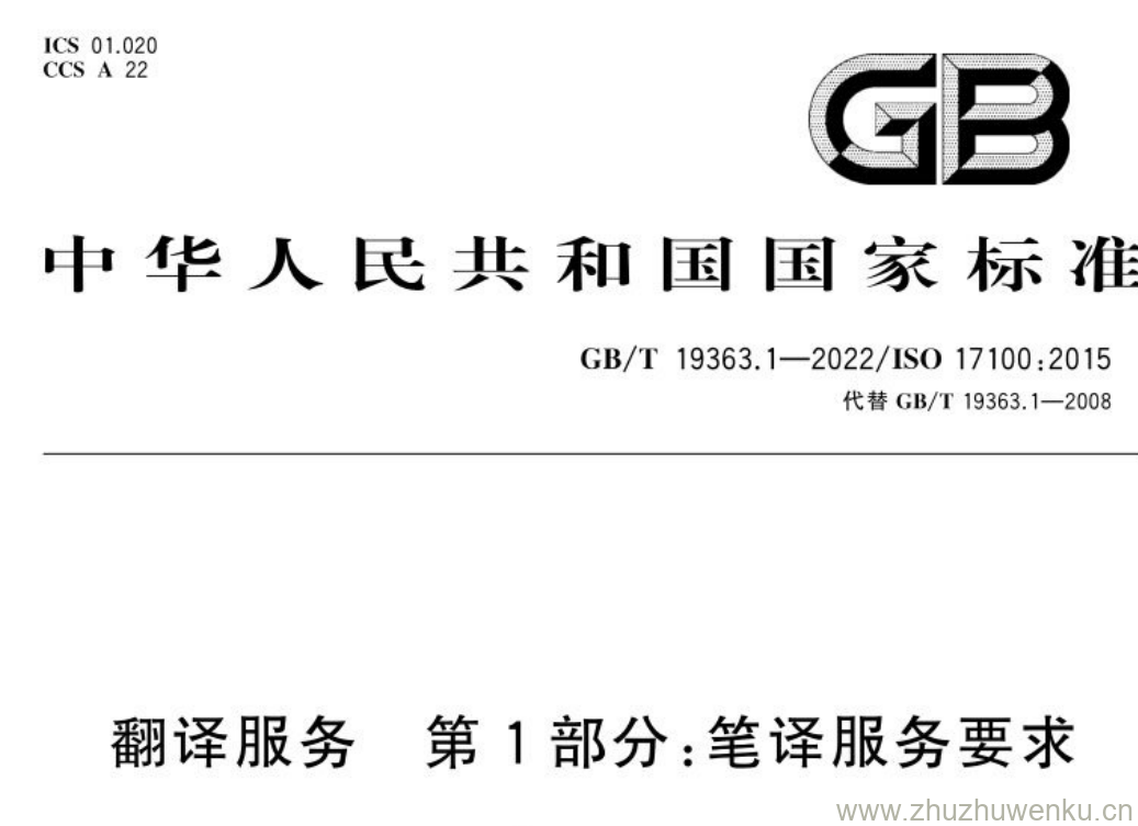 GB/T 19363.1-2022 pdf下载 翻译服务 第1部分:笔译服务要求