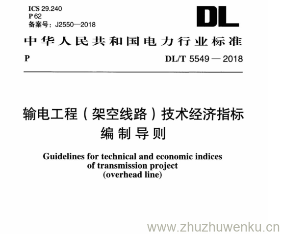 DL/T 5549-2018 pdf下载 输电工程(架空线路)技术经济指标 编制导则。Guidelines for technical and economic indices of transmission project (overhead line).