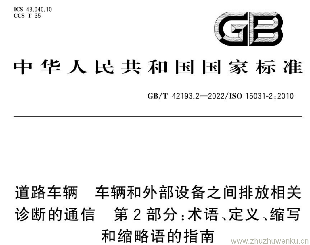 GB/T 42193.2-2022 pdf下载 道路车辆 车辆和外部设备之间排放相关诊断的通信第2部分:术语、定义、缩写 和缩略语的指南