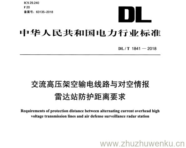 DL/T 1841-2018 pdf下载 交流高压架空输电线路与对空情报 雷达站防护距离要求。Requirementsofprotection distance between alternating current overhead high voltagetransmission lines and air defense surveillance radar station.