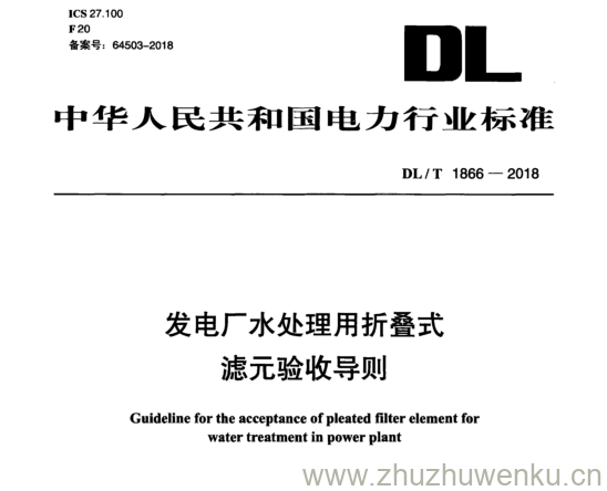 DL/T 1866-2018 pdf下载 发电厂水处理用折叠式 滤元验收导则。Guideline for the acceptance of pleated filter element for water treatment in power plant.