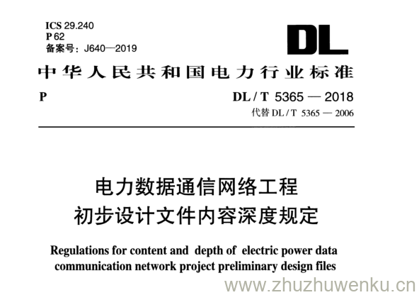 DL/T 5365-2018 pdf下载 电力数据通信网络工程 初步设计文件内容深度规定。Regulations for content and depth of electric power data communication network project preliminary design files.