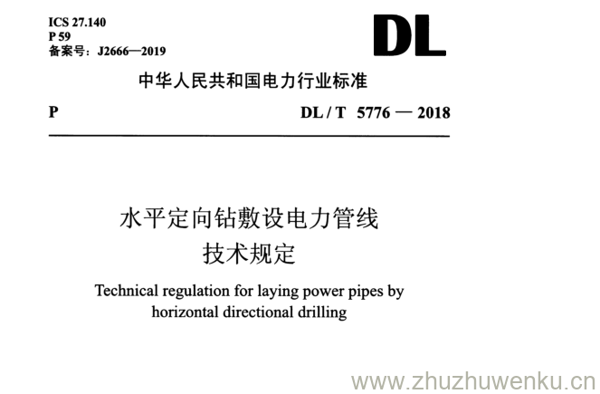 DL/T 5776-2018 pdf下载 水平定向钻敷设电力管线 技术规定。Technical regulation for laying power pipes by horizontal directional drilling.