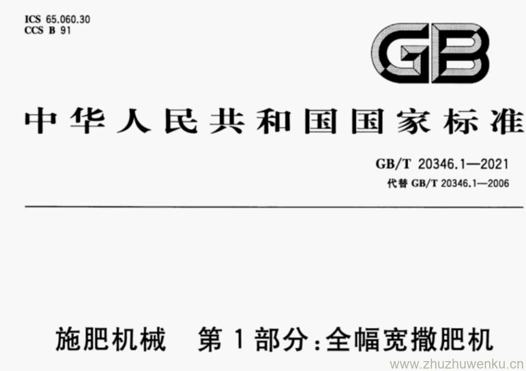 GB/T 20346.1-2021 pdf下载 施肥机械 第1部分:全幅宽撒肥机