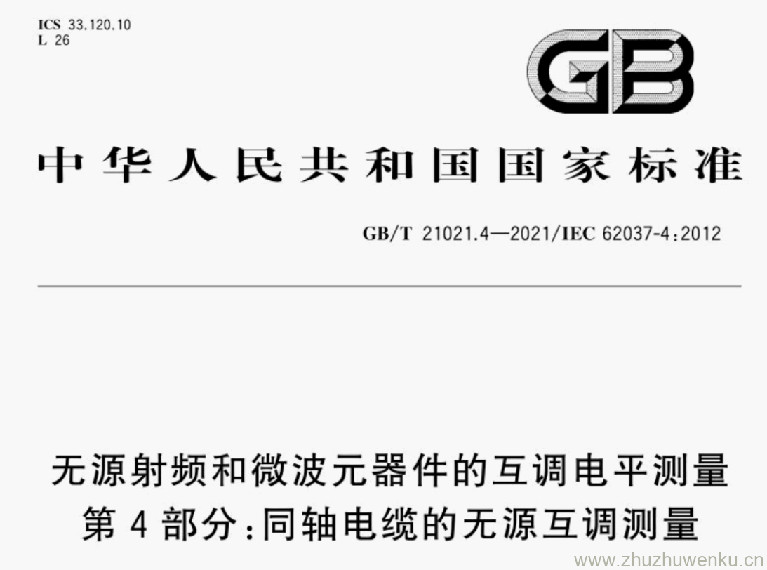 GB/T21021的本部分描述了测量同轴电缆无源互调电平推荐的试验装置和试验程序,包括两个动态试验方法和一个静态试验方法。
