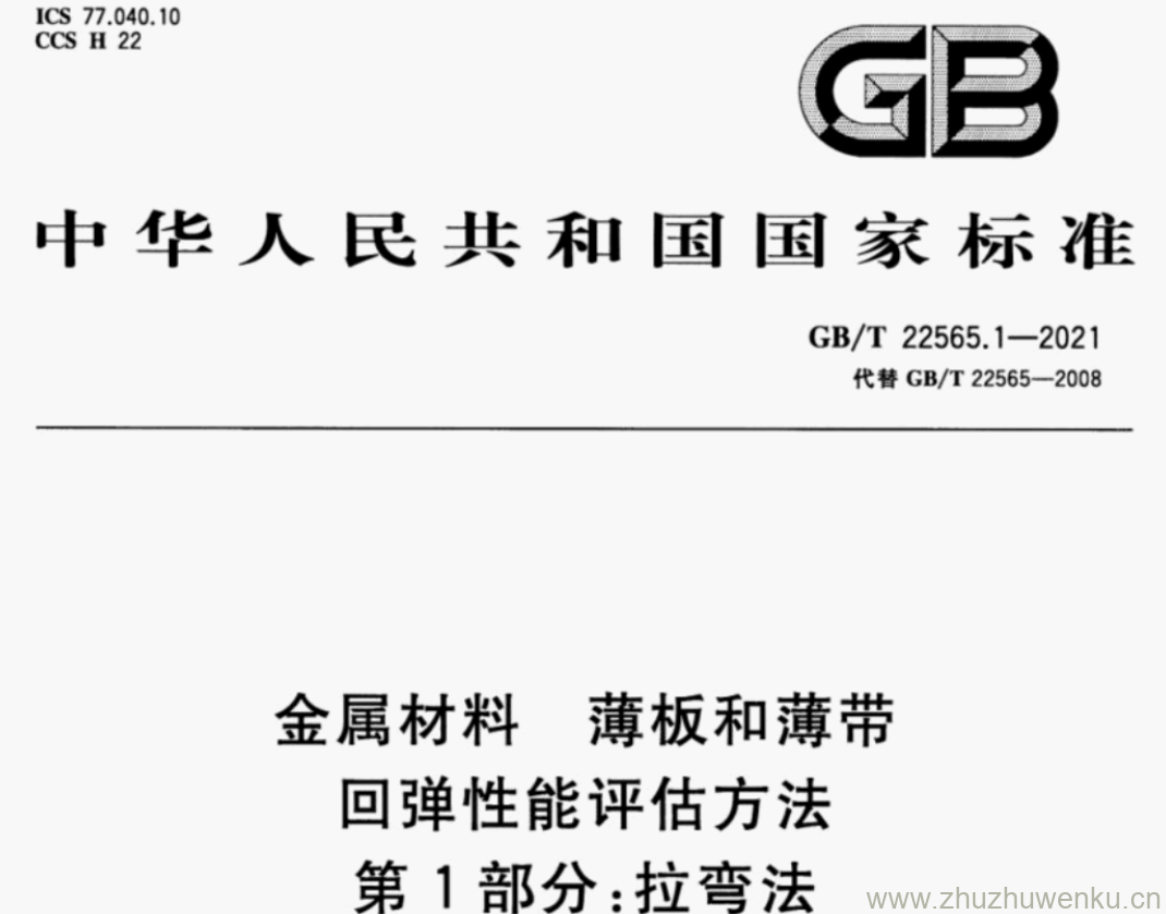 GB/T 22565.1-2021 pdf下载 金属材料 薄板和薄带 回弹性能评估方法 第1部分:拉弯法