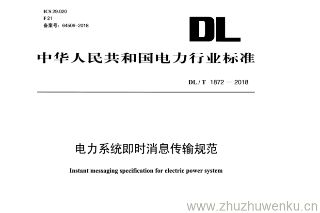 DL/T 1872-2018 pdf下载 电力系统即时消息传输规范。Instant messaging specification for electric power system.