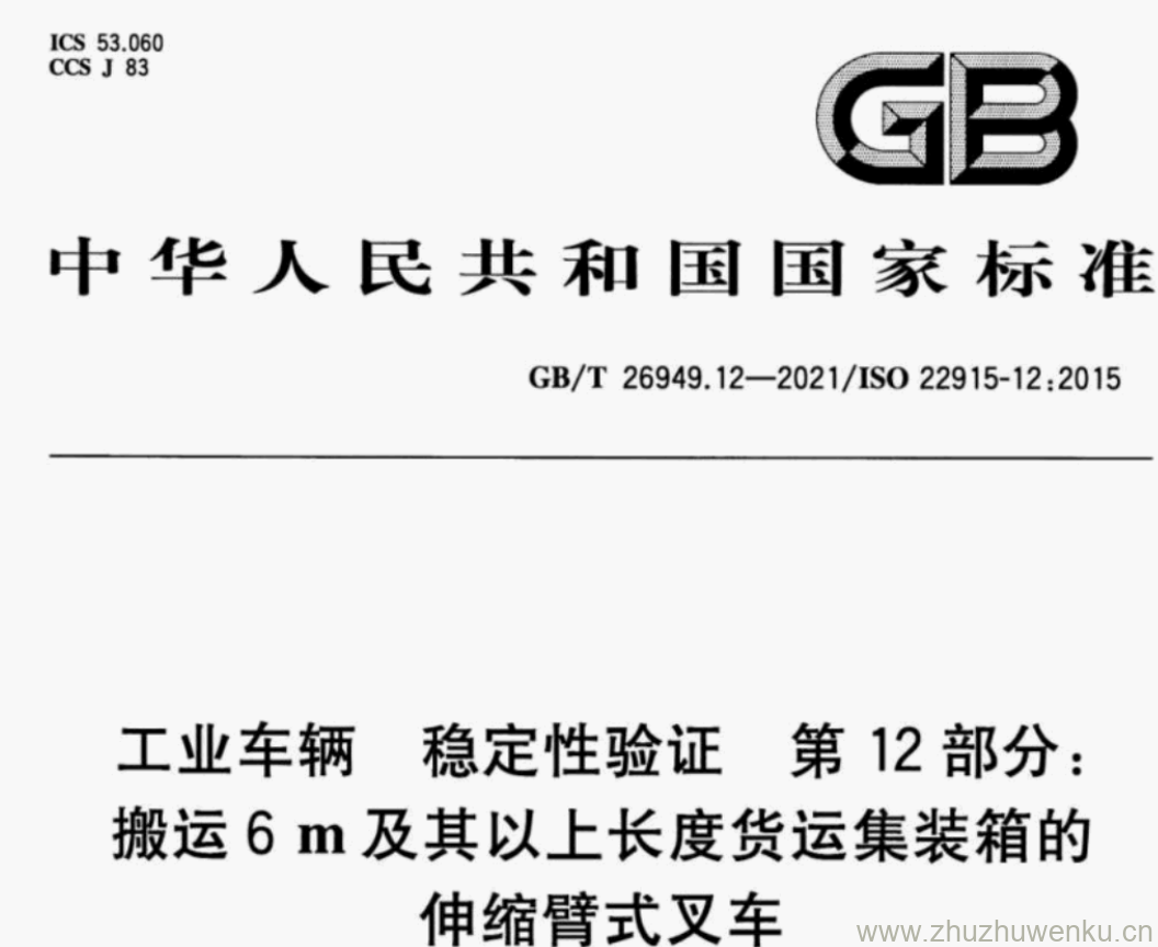 GB/T 26949.12-2021 pdf下载 工业车辆稳定性验证 第12部分: 搬运6m及其以上长度货运集装箱的 伸缩臂式叉车,