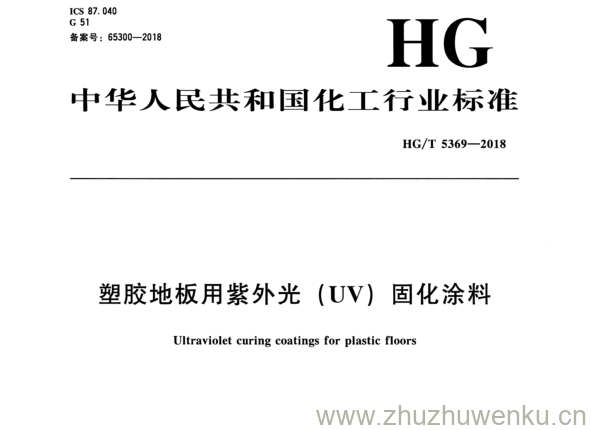 HG/T 5369-2018 pdf下载 塑胶地板用紫外光( UV ) 固化涂料。 Ultraviolet curing coatings for plastic floors.