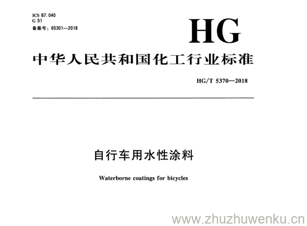 HG/T 5370-2018 pdf下载 自 行车用 水性涂料。 Waterborne coatings for bicycles.