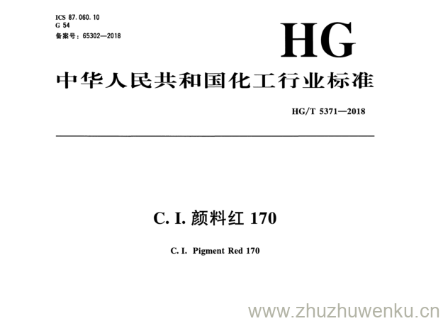HG/T 5371-2018 pdf下载 C . I .颜料红170 。C. I. Pigment Red 170.