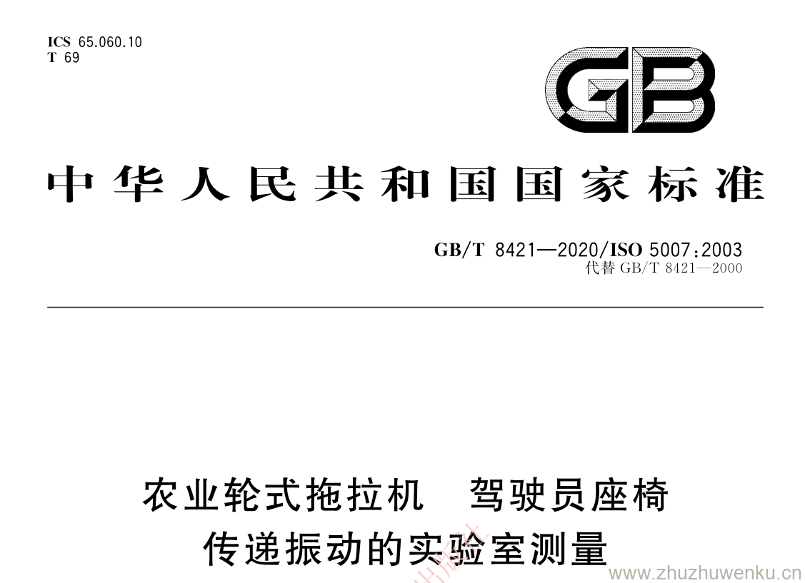 GB/T 8421-2020 pdf下载 农业轮式拖拉机 驾驶员座椅 传递振动的实验室测量