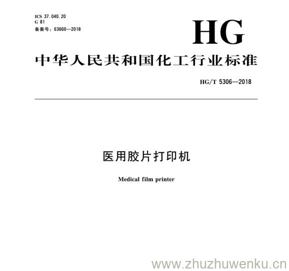 HG/T 5306-2018 pdf下载 医用胶片 打印机。 Medical film printer.