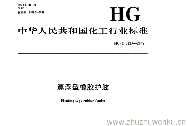 HG/T 5327-2018 pdf下载 漂浮型橡胶护舷。 Floating type rubber fender.