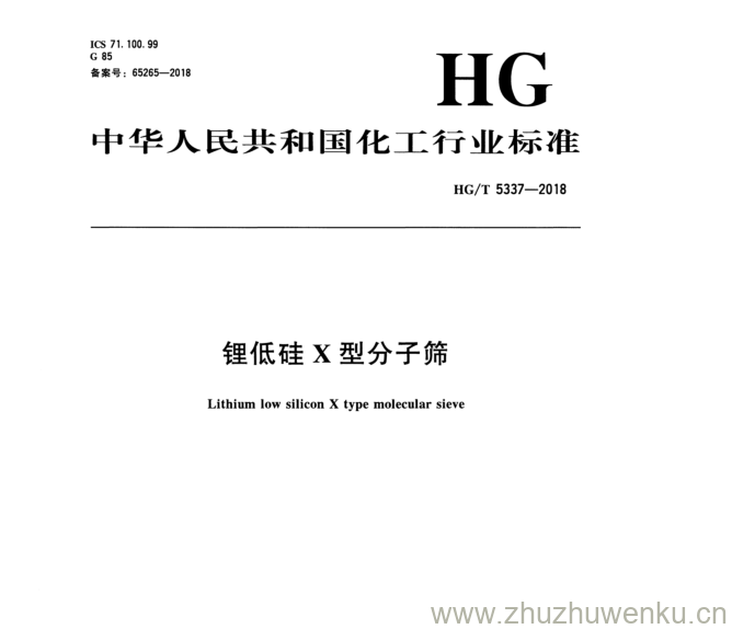 HG/T 5337-2018 pdf下载 锂低硅 X 型分子筛。 Lithium low silicon X type molecular sieve.