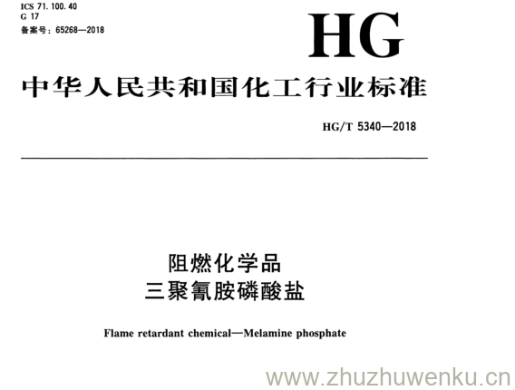 HG/T 5340-2018 pdf下载 阻燃化学品 三聚氰胺磷酸盐。 Flame retardant chemical—Melamine phosphate.