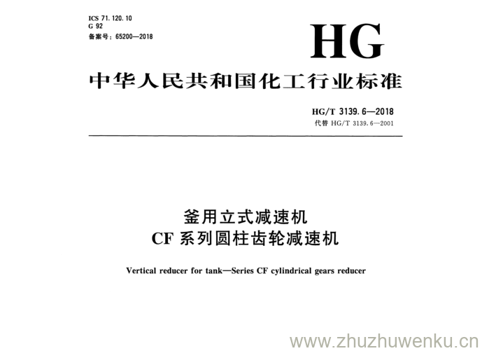 HG/T 3139.6-2018 pdf下载 釜用立式减速机 C F 系列圆柱齿轮减速机。Vertical reducer for tank—Series CF cylindrical gears reducer.