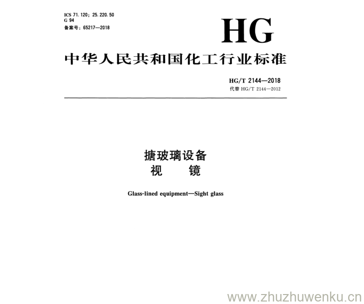 HG/T 2144-2018 pdf下载 搪玻璃设备 视 镜。 Glass-lined equipment—Sight glass.
