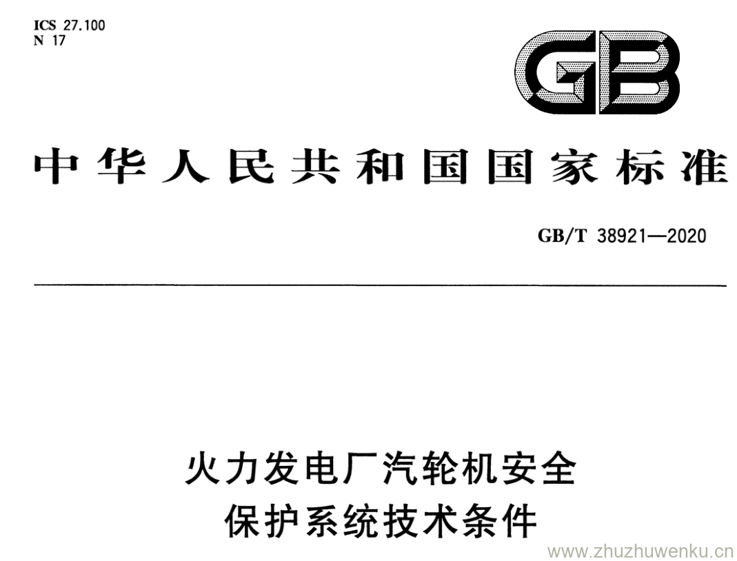 GB/T 38921-2020 pdf下载 火力发电厂汽轮机安全 保护系统技术条件