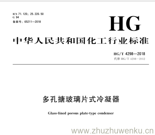 HG/T 4298-2018 pdf下载 多孔搪玻璃片 式冷凝器