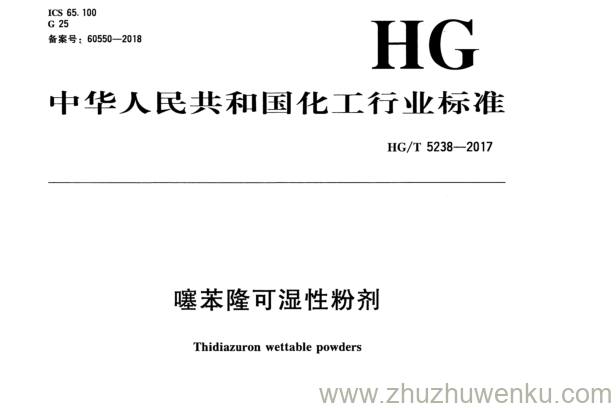 HG/T 5238-2017 pdf下载 噻苯隆可湿性粉剂。 Thidiazuron wettable powders.
