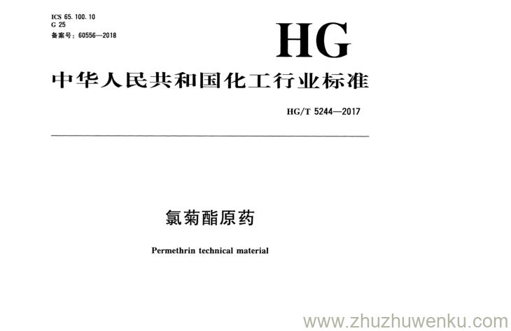 HG/T 5244-2017 pdf下载 氯菊酯原药 。Permethrin technical material.