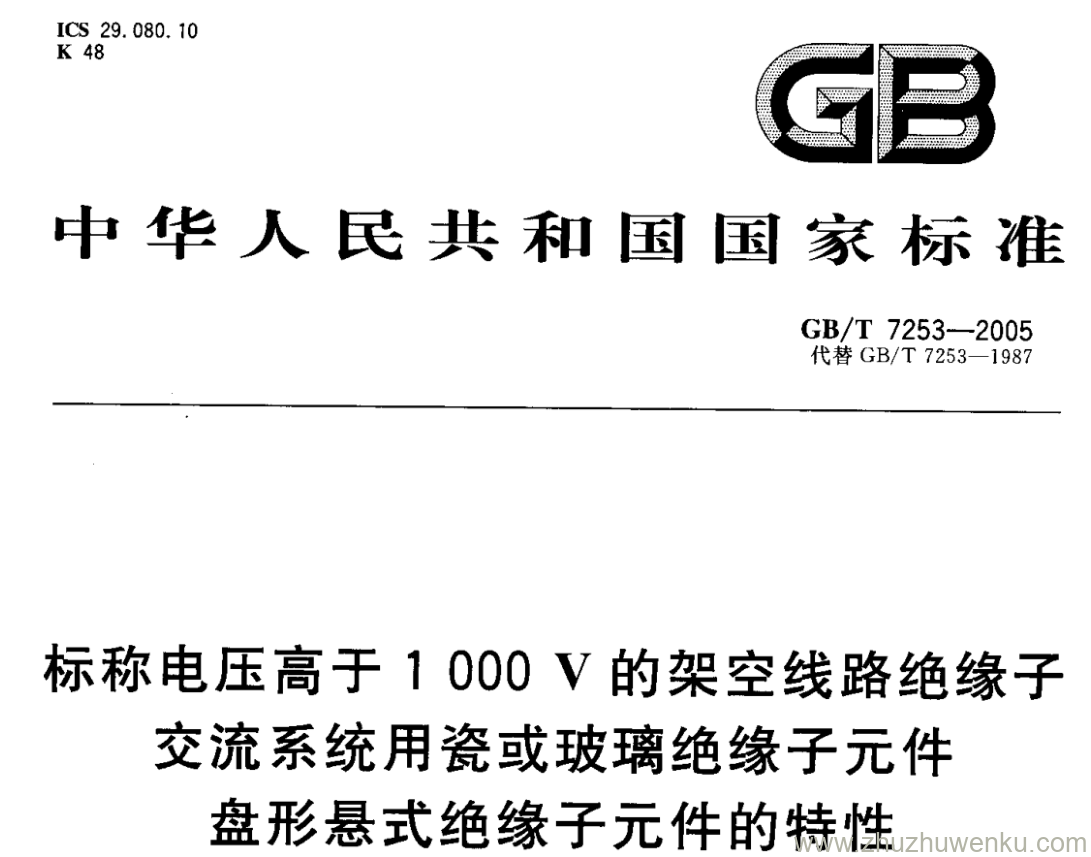 GB/T 7253-2005 pdf下载 标称电压高于1000V的架空线路绝缘子交流系统用瓷或玻璃绝缘子元件盘形悬式绝缘子元件的特性