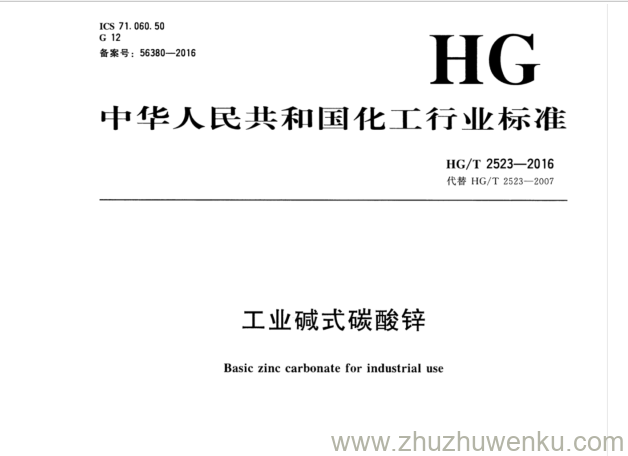 HG/T 2523-2016 pdf下载 工业碱式碳酸锌 。Basic zinc carbonate for industrial use .