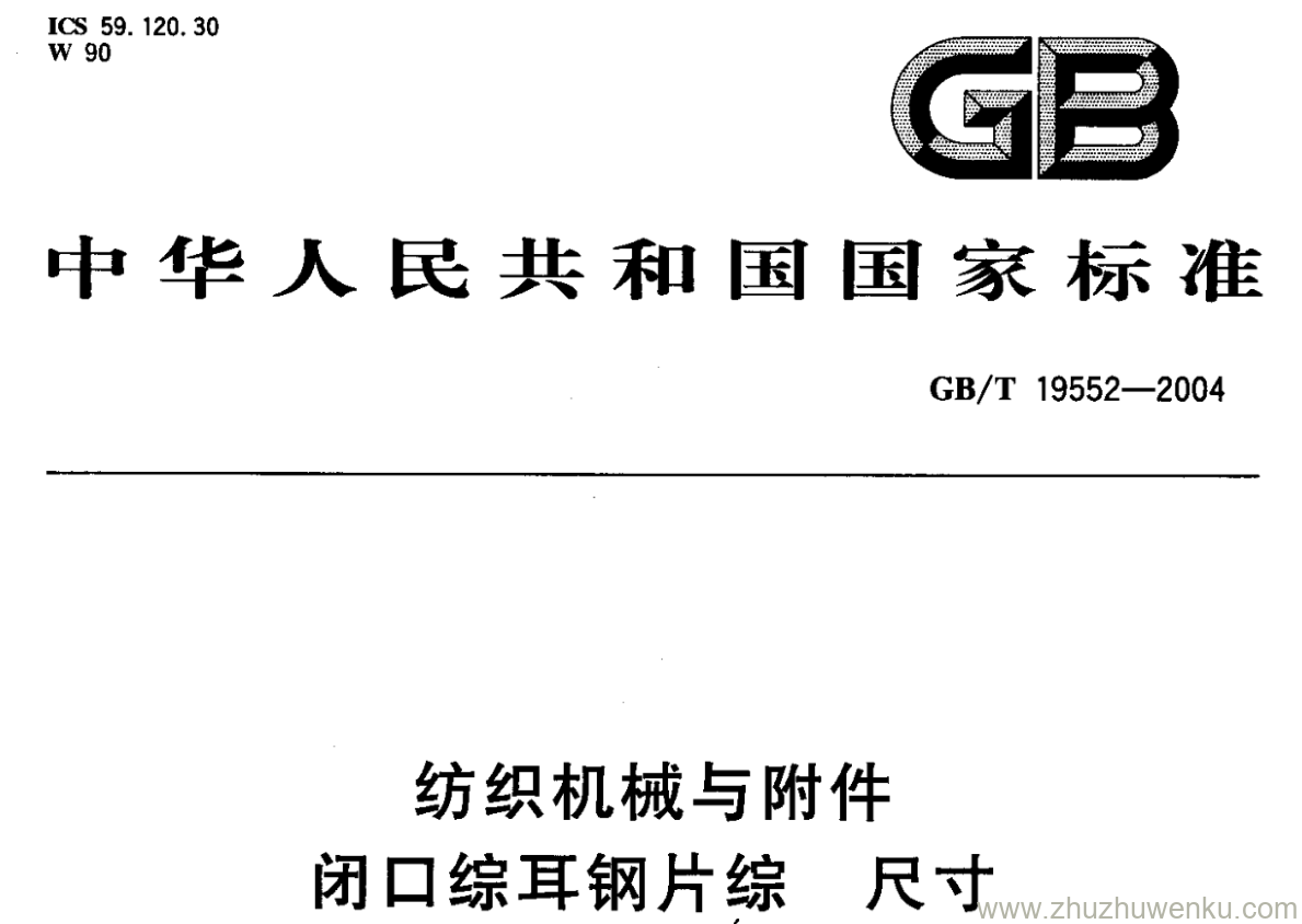 GB/T 19552-2004 pdf下载 纺织机械与附件 闭口综耳钢片综 尺寸