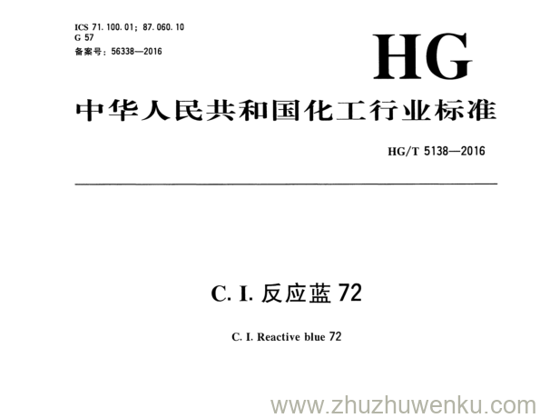 HG/T 5138-2016 pdf下载 C . I . 反 应 蓝 72。 C. I. Reactive blue 72.