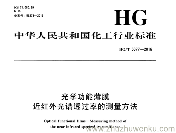 HG/T 5077-2016 pdf下载 光学功能薄膜 近红外光谱透过率的测量方法