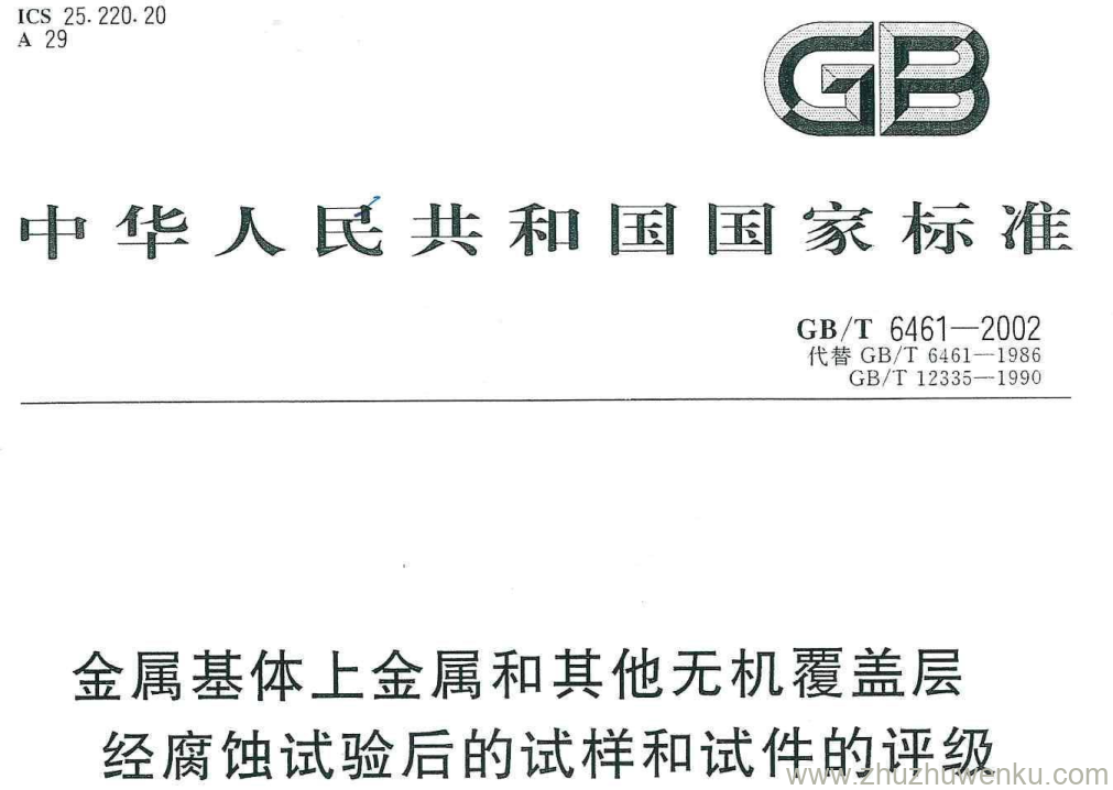 GB/T 6461-2002 pdf下载 金属基体上金属和其他无机覆盖层 经腐蚀试验后的试样和试件的评级