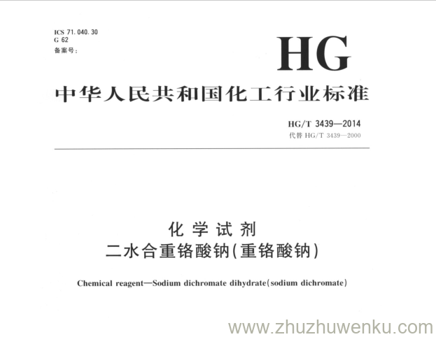 HG/T 3439-2014 pdf下载 化学试剂 二水合重铬酸钠(重铬酸钠)。 Chemical reagent- Sodium dichromate dihydrate( sodium dichromate) .