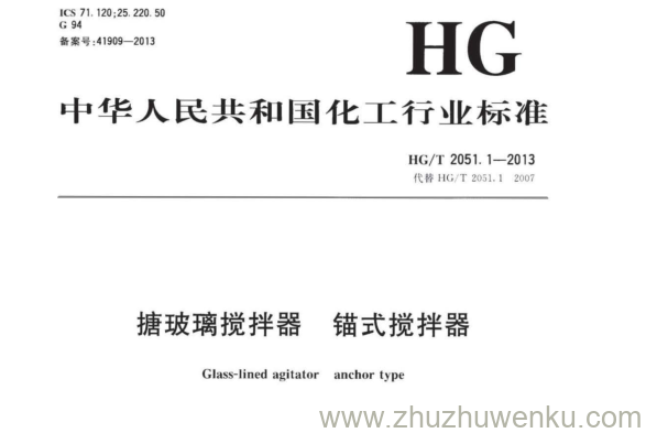 HG/T 2051.1-2013 pdf下载 搪玻璃搅拌器锚式搅拌 器