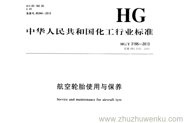 HG/T 2195-2013 pdf下载 航空轮胎使用与保养。Service and maintenance for aircraft tyre .