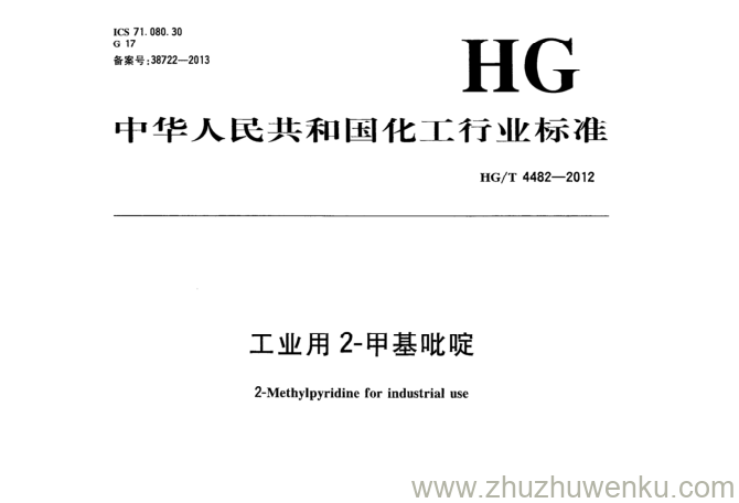 HG/T 4482-2012 pdf下载 工业用2-甲基吡啶。 2-Methylpyridine for industrial use .