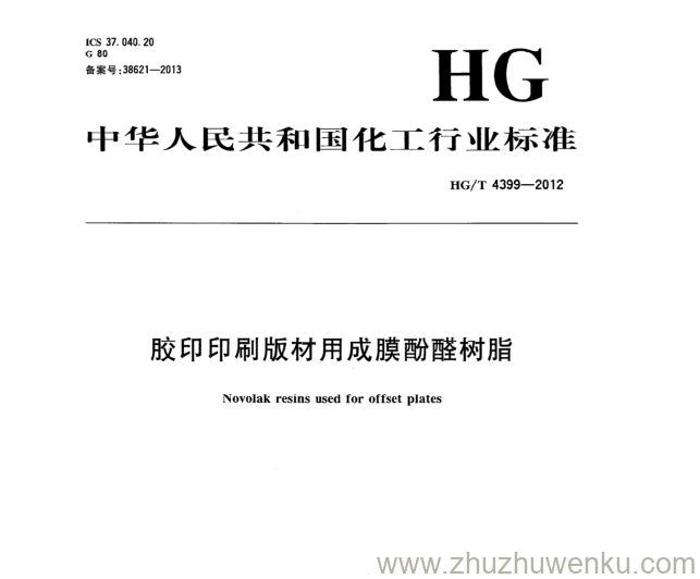 HG/T 4399-2012 pdf下载 胶印印刷版材用成膜酚醛树脂