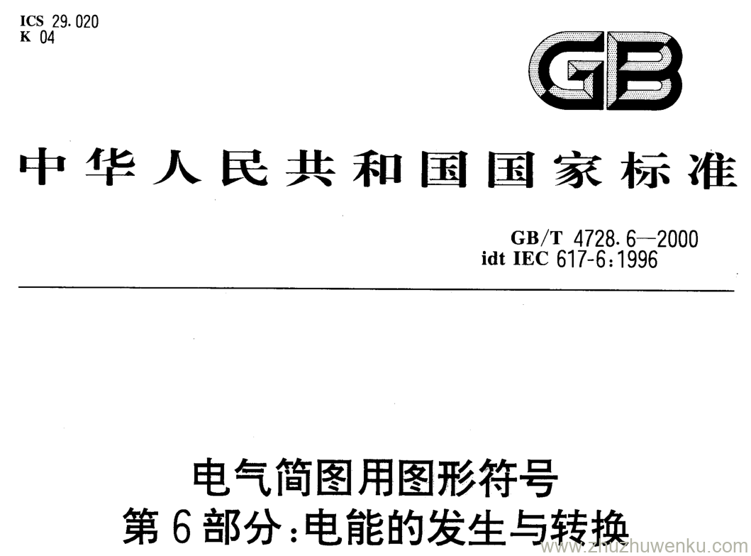 GB/T 4728.6-2000 pdf下载 电气简图用图形符号 第6部分:电能的发生与转换