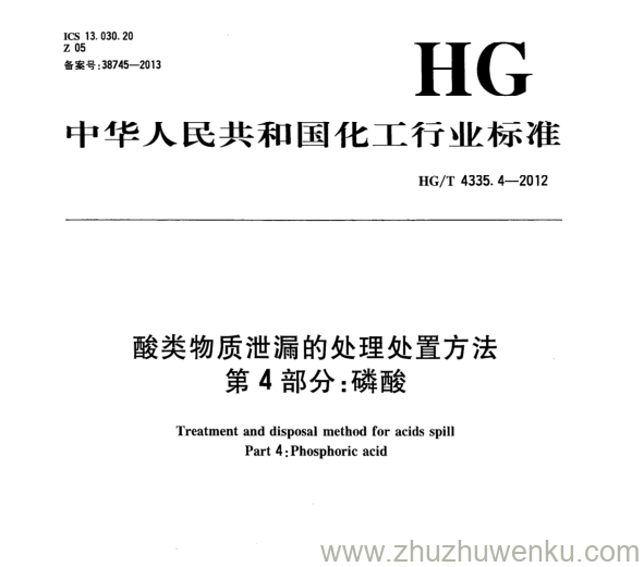 HG/T 4335.4-2012 pdf下载 酸类物质泄漏的处理处置方法 第4部分:磷酸。 Treatment and disposal method for acids spill Part 4:Phosphoric acid .